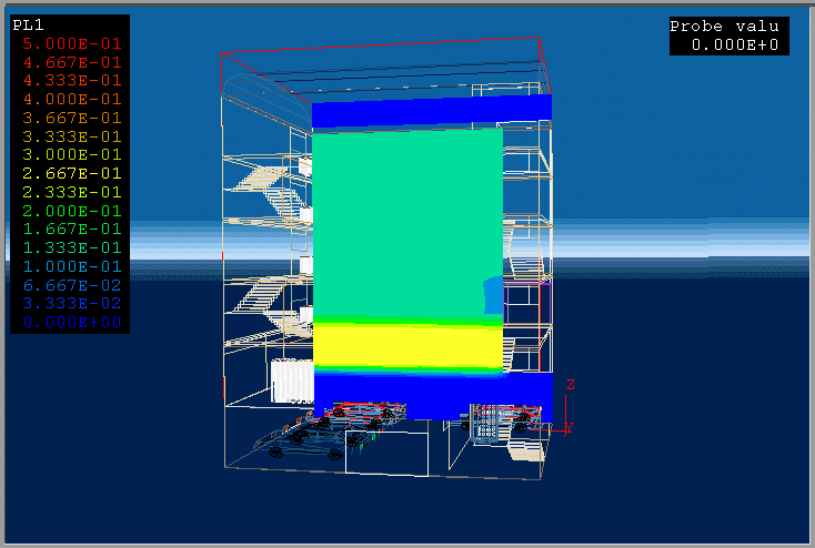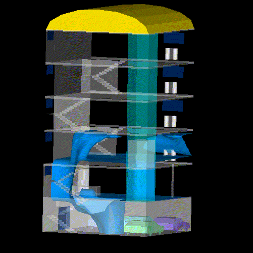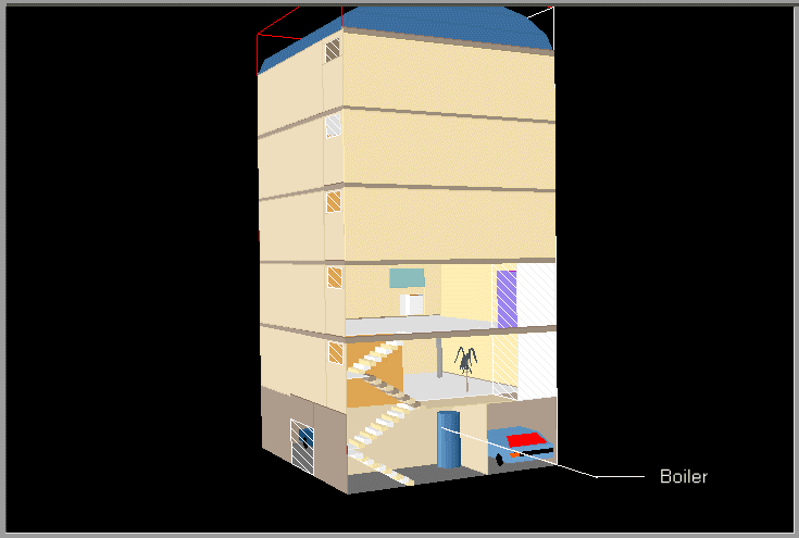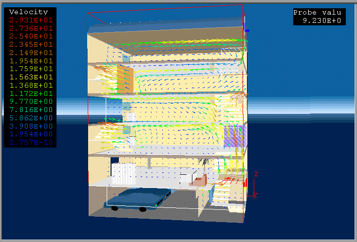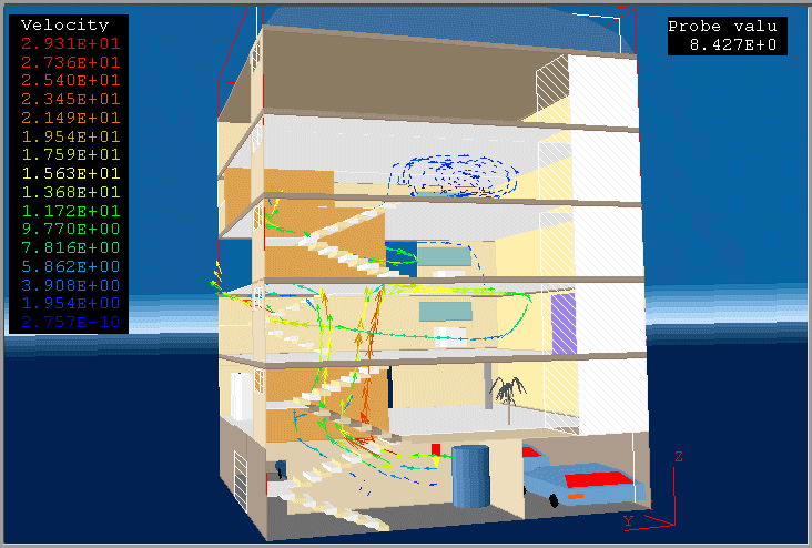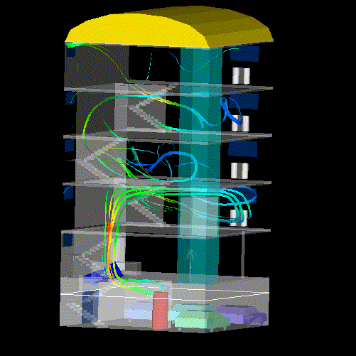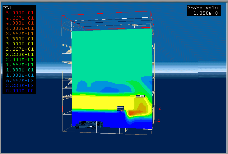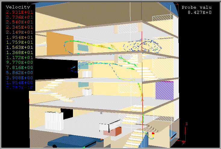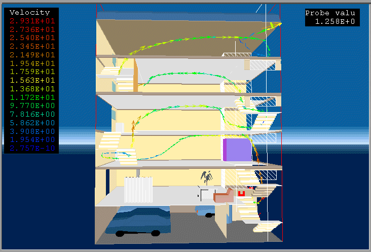 PHOENICS 3.1 was used to model the fire in a building.