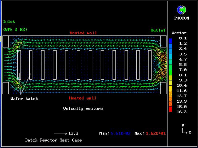 Deposition on the wafer is fairly uniform except for the leading wafers in the batch which are cooled by the incoming gas.