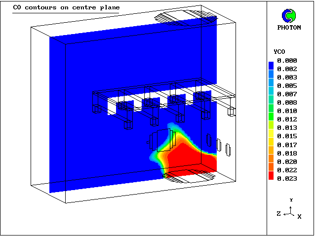 3. Contours of CO mass concentration at centre plane