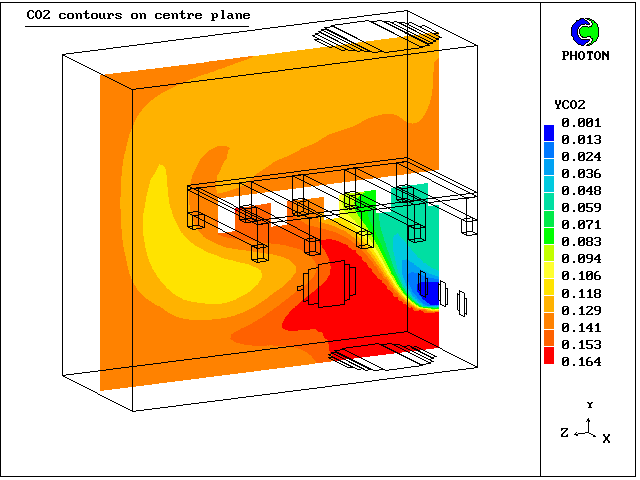 4. Contours of CO2 mass concentration at centre plane