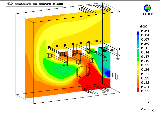 5. Contours of H2O mass concentration at centre plane