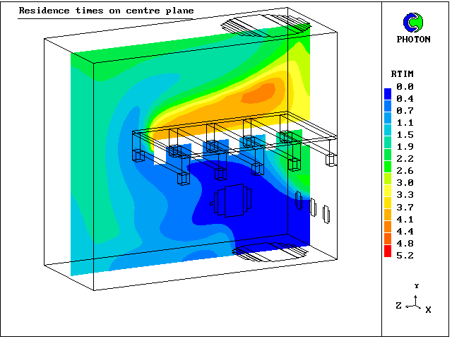 2. Contours of residence times at centre plane