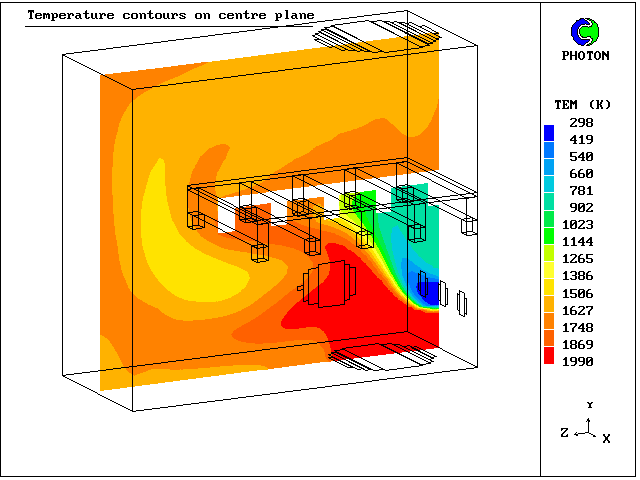 8. Contours of fluid temperature at centre plane