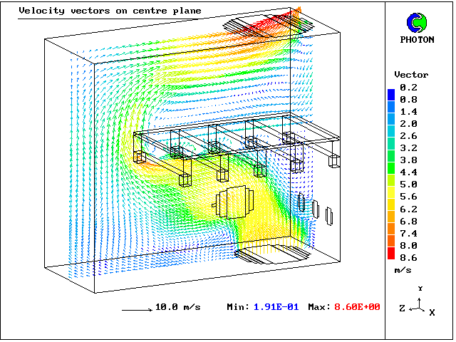The geometry is created using PHOENICS-2.2 and uses a Cartesian 3D grid. The case was run on a 133MHz Pentium PC .