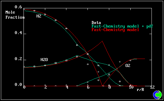 6. TURBULENT DIFFUSION FLAME: MOLE-FRACTION PROFILES AT Z/D=80