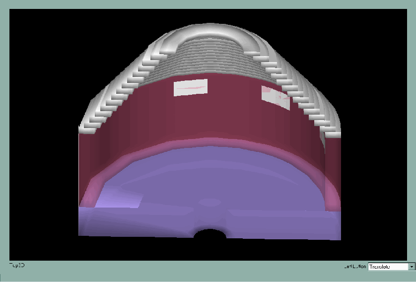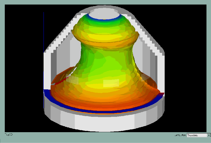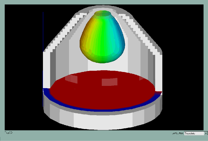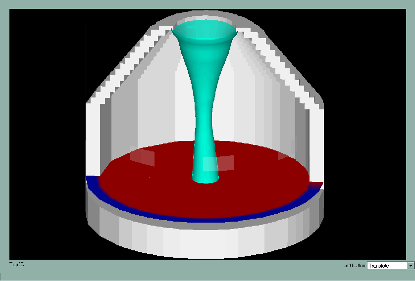 2. Iso-surface of pressure indicating the shape of the cyclone above the quench tank,