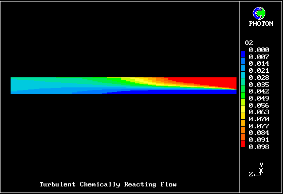 - 2D steady turbulent diffusion flame in a pipe of 0.32m diameter