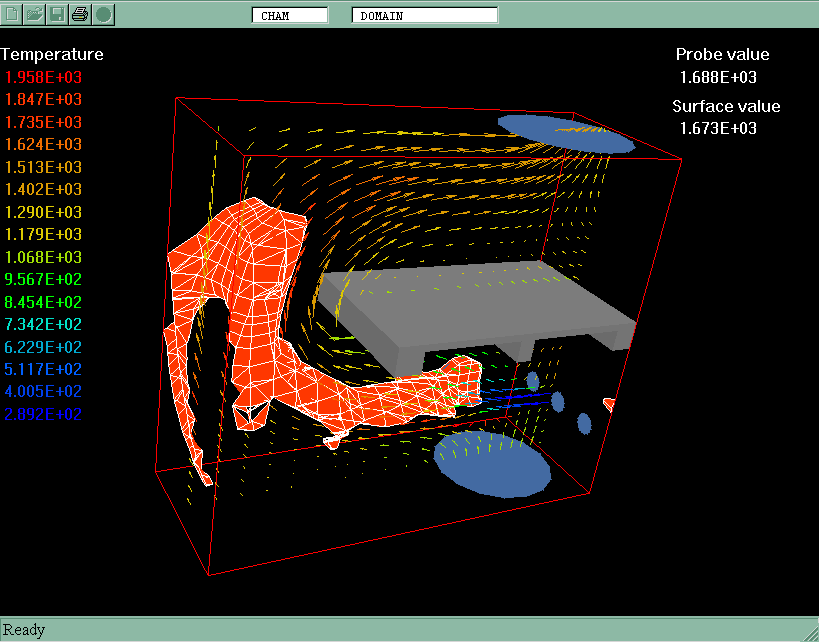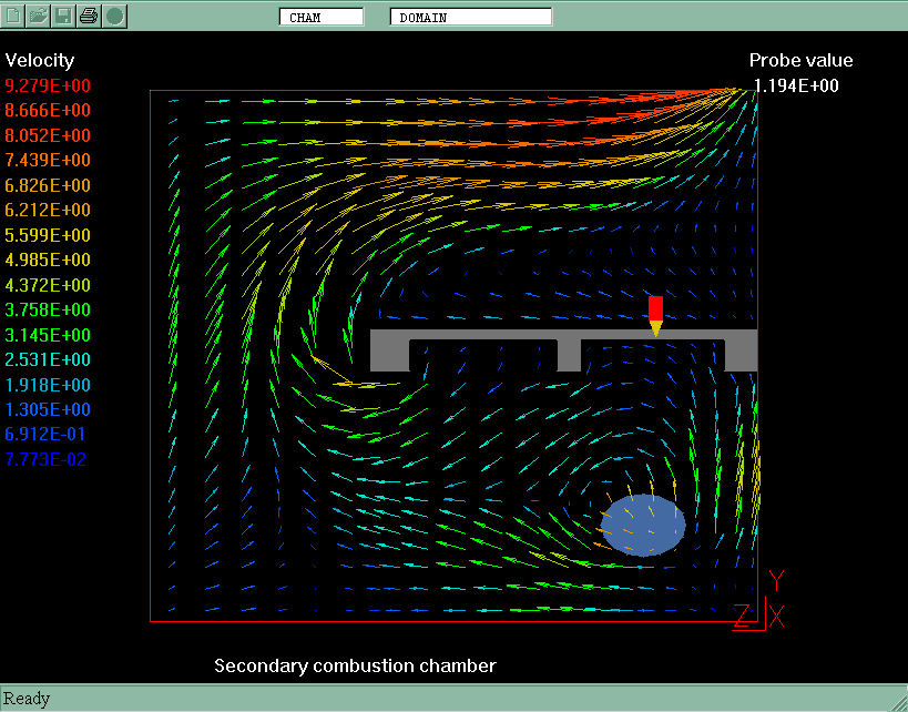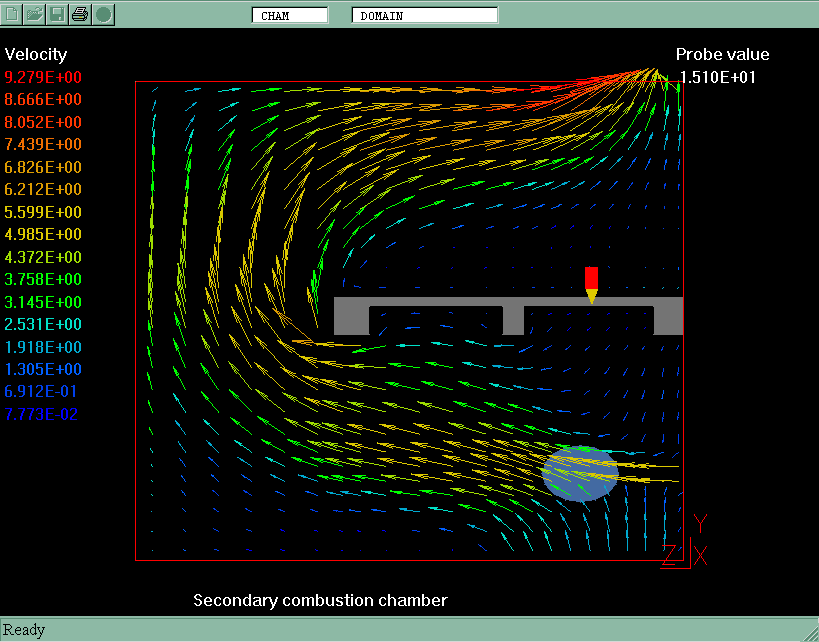 All model settings have been made in VR-Editor of PHOENICS 3.3.1. PLANT menu has been used to introduce the combustion model features.