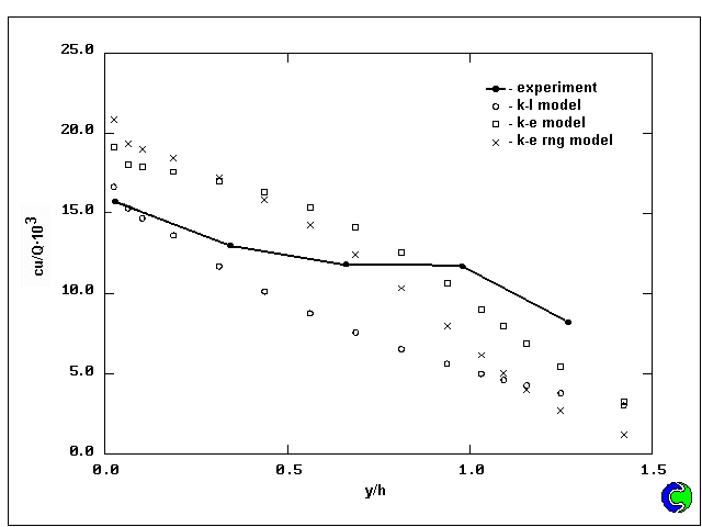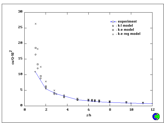 vertical normalized centerline concentration profile at z/h=6.6 with results computed