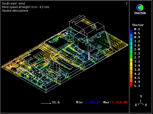 - Simulation predicts the air flow and transient concentration fields near buildings.
