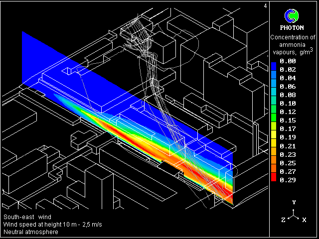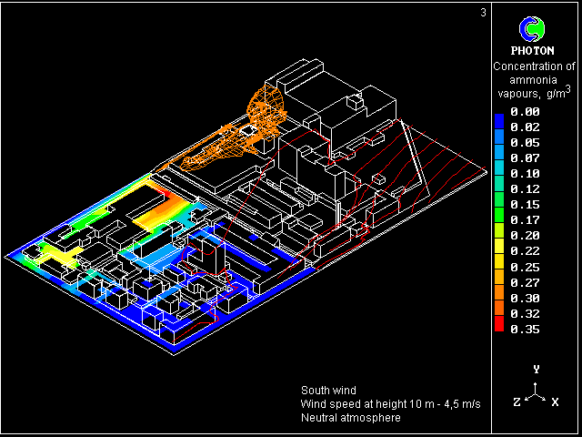 - PHOENICS has been used to calculate the dispersion of ammonia vapours in town conditions
