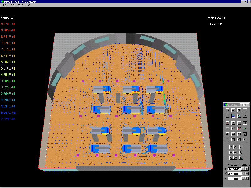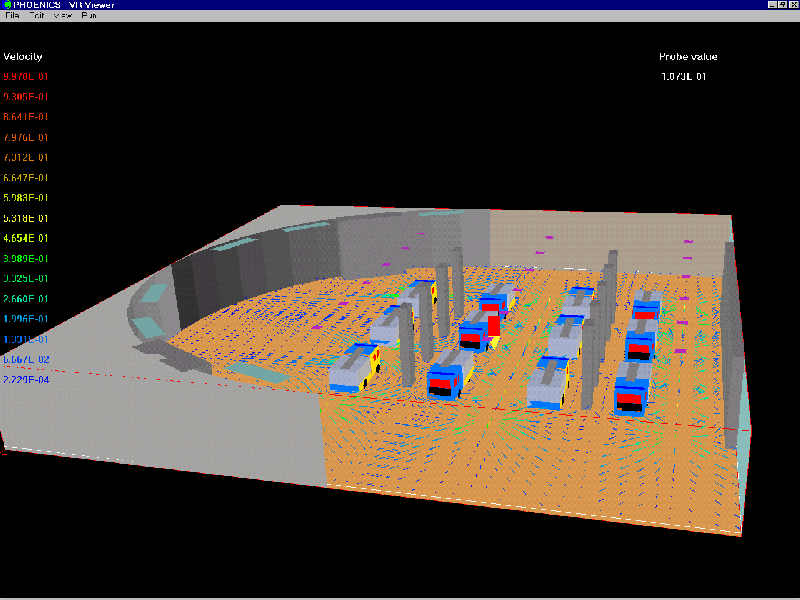 Velocity vectors at approximately head height, viewed from inside the terminal. The upward fountains mentioned above can clearly be seen.