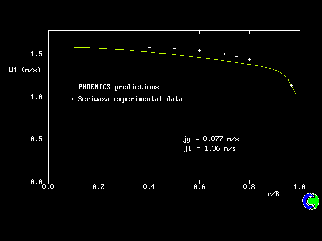 1. Seriwaza pipe flow: liquid axial velocity profiles at z/d=35.