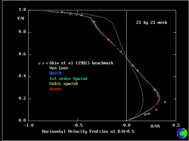 - PHOENICS calculations are performed on a 21 by 21 mesh with 5