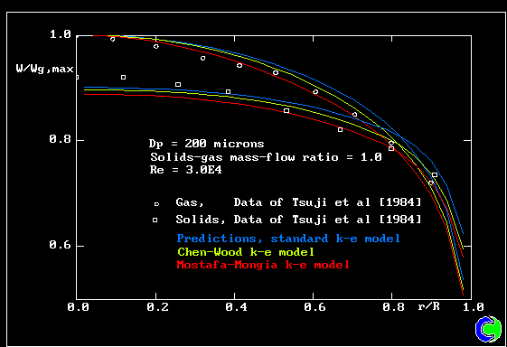 GAS-PARTICLE PIPE UPFLOW: Vertical velocity radial profiles.
