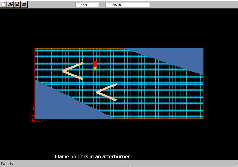 The case is aimed to demonstrate the 'cut-off' technique of PARSOL method to represent the inclined walls of combustor and flameholders on Cartesian grid.