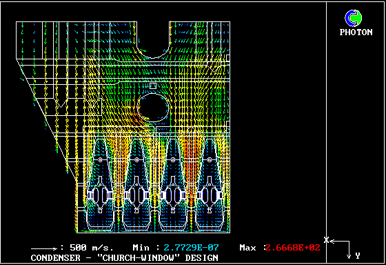 2. FRONT VIEW - Gas Velocity Vectors through the centre section of the Condenser