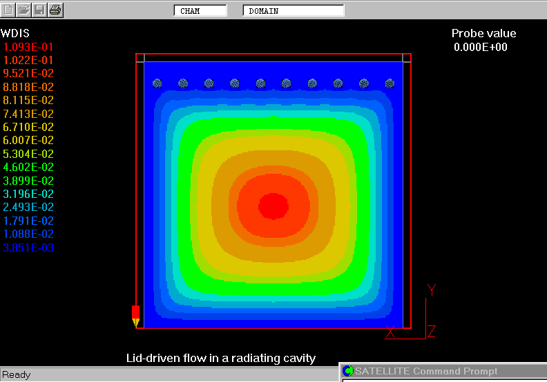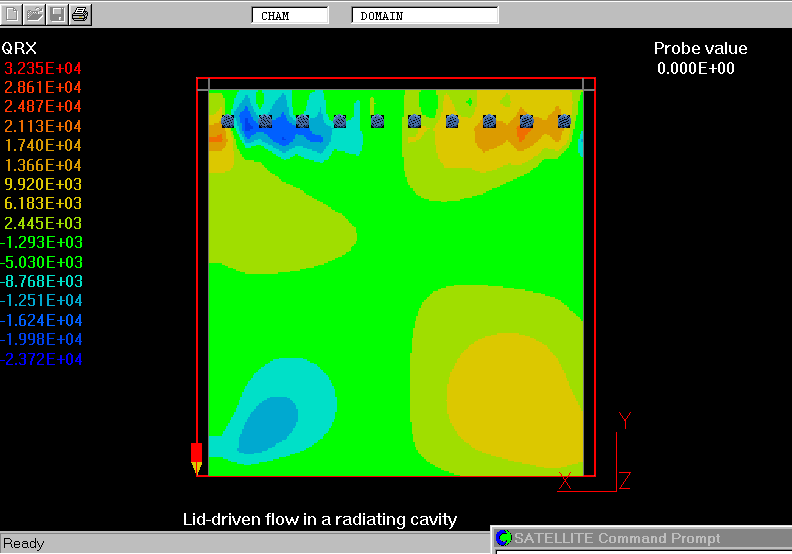 The IMMERSOL model is used to simulate the distribution of T3 and TEM1 within the space filled with transparent air. From the temperature fields the radiant heat fluxes, QRX and QRY, W/m^2, are calculated and used as the heat sources in iterative manner.