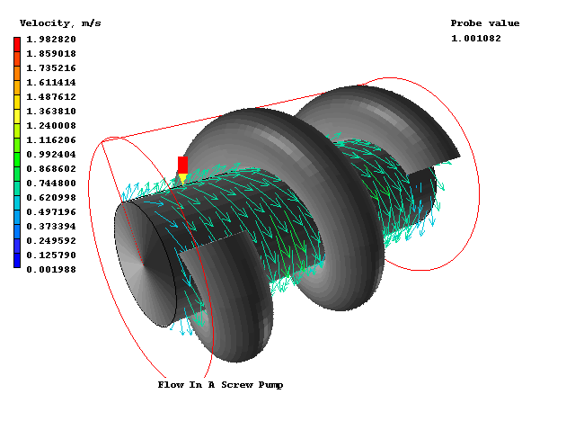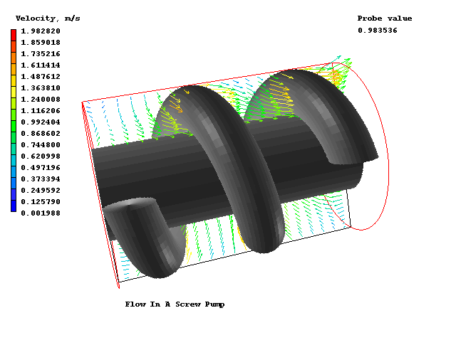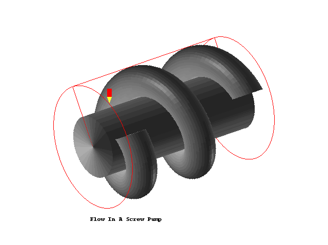 Shapemaker has been used to create the helical coil object and the case presented makes use of it for the situation when the rotation of a helix attached to the shaft pumps the fluid.