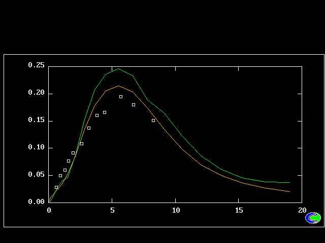 Green line - MFM prediction Yellow line - transport equation /phoenics/d_polis/d_applic/mftm/0016