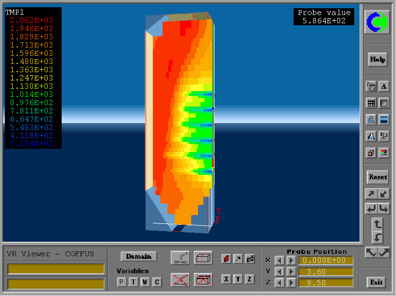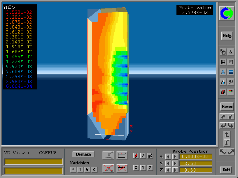 A 2-phase combustion model has been utilised for COFFUS-VR. This model uses a 2-phase Eulerian-Eulerian description of the gas and solid phases which is based on the IPSA solution procedure.