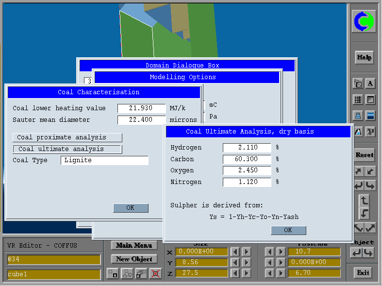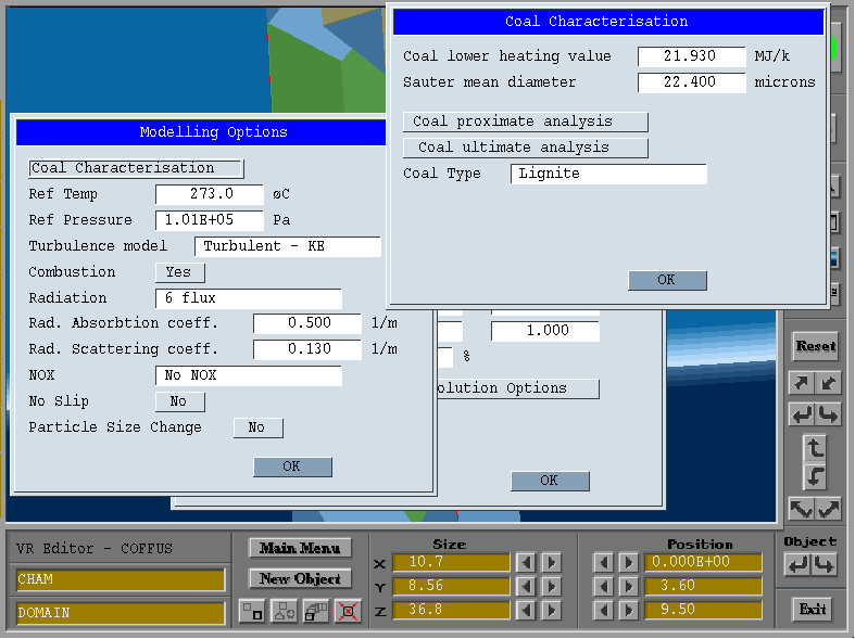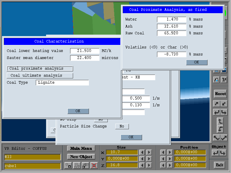 The coal type requires the user to select from lignite, bituminous, anthracite, subbituminous and semianthracite. However, these options have no effect in the current release, although the framework for doing so has been provided in the PIL fragment COFFUS2, which is located in the directory PHOENICS/D_SATELL/D_MEN/MICA/COFFUS.