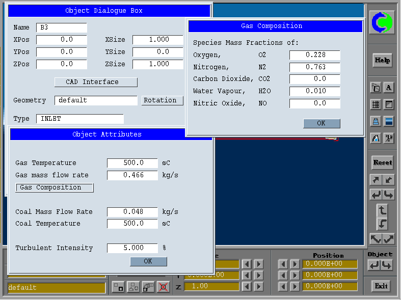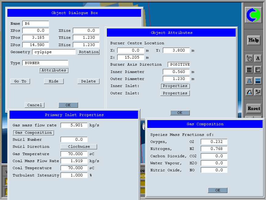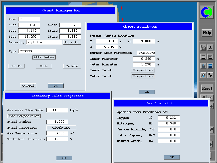 Figure 6: Burner Object Dialogue Box: Secondary Inlet