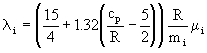 for monatomic gases; the Eucken correction is used for polyatomic gases: