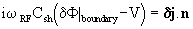 The sheath region is assumed to be depleted of electrons and unable to support drift or diffusion. Instead the current between bulk and electrodes is carried by the displacement current, with the sheath acting as a capacitor. With Csh as the sheath capacitance and V as the electrode voltage this results in