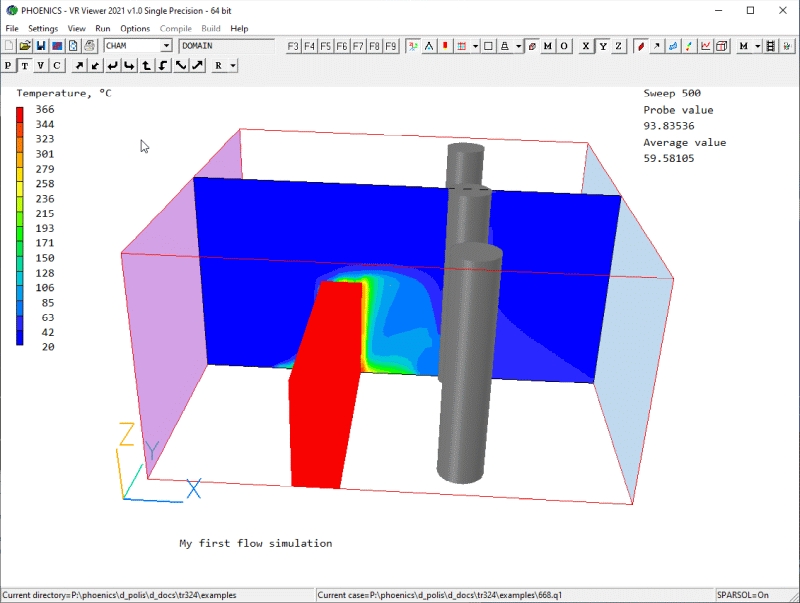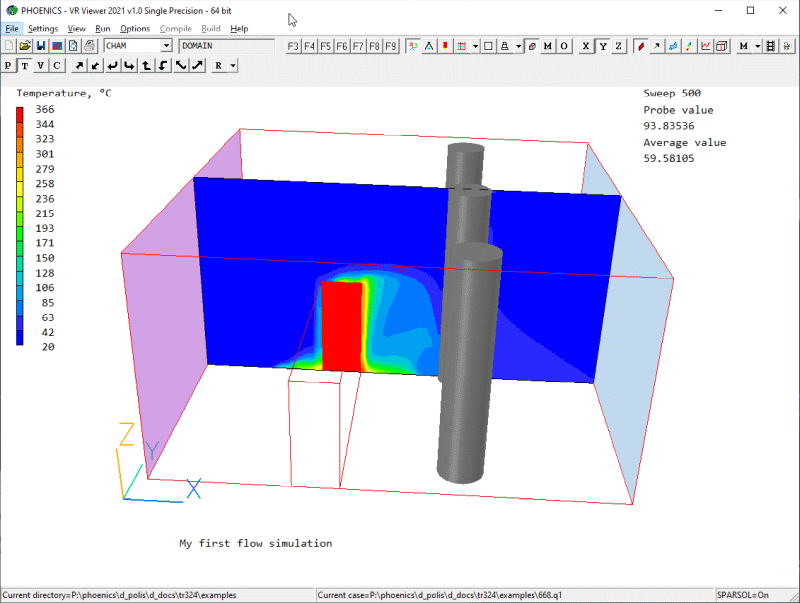 On completion of the simulation, the temperature field can be viewed as before using the VR Viewer by ;
