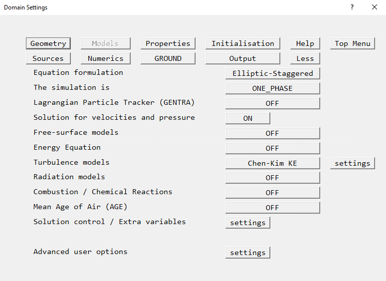 Finally, the VR Editor, and its associated menu, can activate only a subset of the PHOENICS flow-modeling capabilities. Many more can be activated by way of: