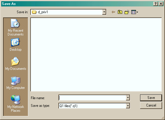 If 'Save changes' is ticked, the Q1 on disk will be overwritten with the current setup. If it is not, the Q1 on disk will be used. It is not necessary to save changes to EARDAT at this point. After clicking 'OK', a file-browsing window will open, as shown below,