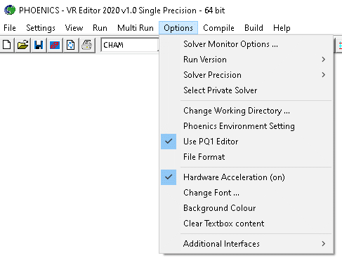 For these options to work correctly, the batch file /phoenics/d_utils/phoepath.bat must be correctly configured, to refer to the correct drive letters and folders for PHOENICS and the Compiler. See the 'Troubleshooting' section of TR/110 for more details.