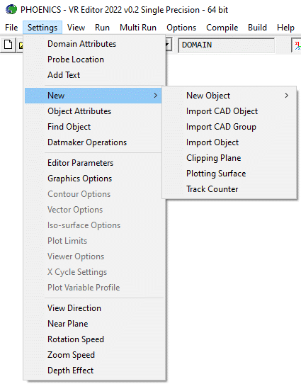For these options to work correctly, the batch file /phoenics /d_utils /phoepath.bat must be correctly configured, to refer to the correct drive letters and folders for PHOENICS and the Fortran Compiler. See the 'Troubleshooting' section of TR/110 for more details. The locations of the model source files are read from \phoenics\d_allpro\phoesav.cfg.