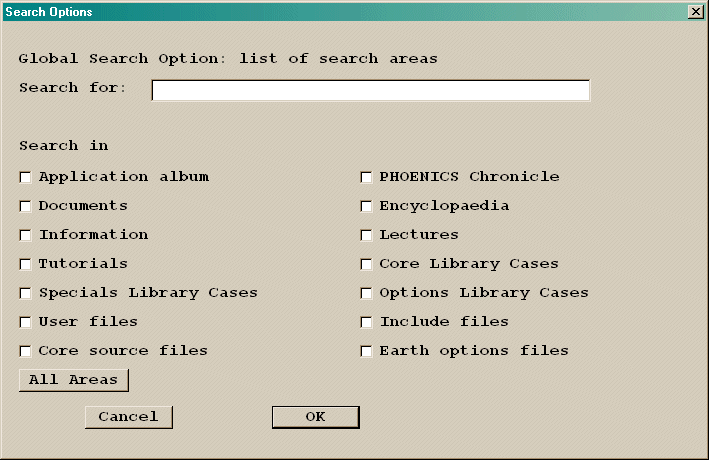 This searches through the PHOENICS documentation for a word or phrase. The dialog shown here