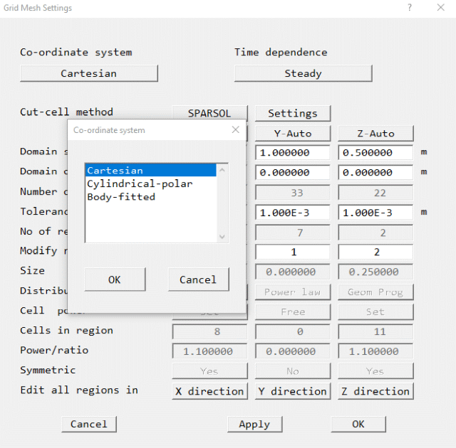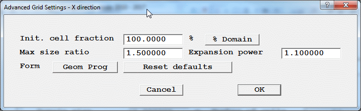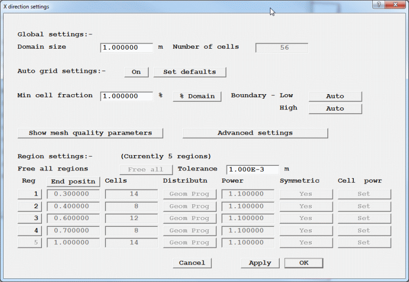 To change the auto-mesh settings for any direction, click 'Edit all regions in' on the Grid Mesh Settings dialog for the direction in question. The following dialog will appear: