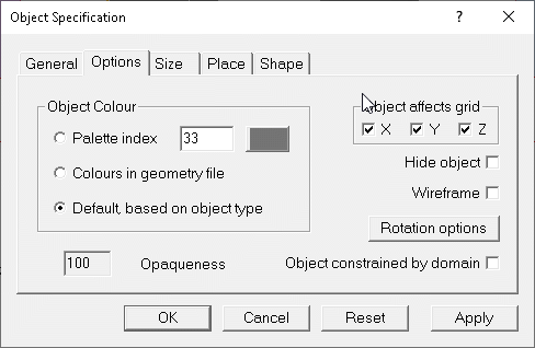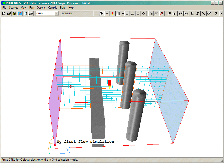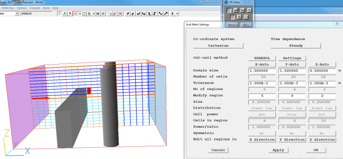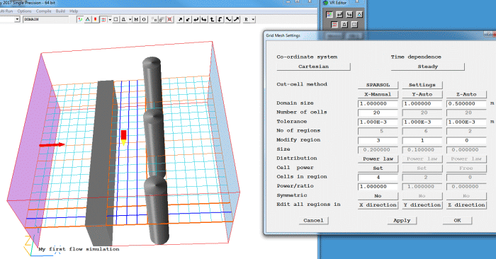 This is sometimes desirable; for the user may know that the objects in question, although truly present, can have negligible influence on phenomena of interest. If so, it is time-wasting to allow the grid to be refined around such objects. See Advice on Grid Settings below.As objects are introduced, removed and re sized, the region lines will adapt to match the object layout.