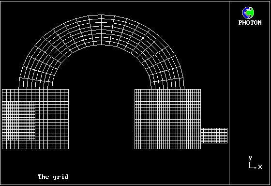 The following pictures illustrate the use of the model for the flow in a small element of a "labyrinth", i.e. a space in which fluid is forced to follow a winding path by the presence of solid obstacles.