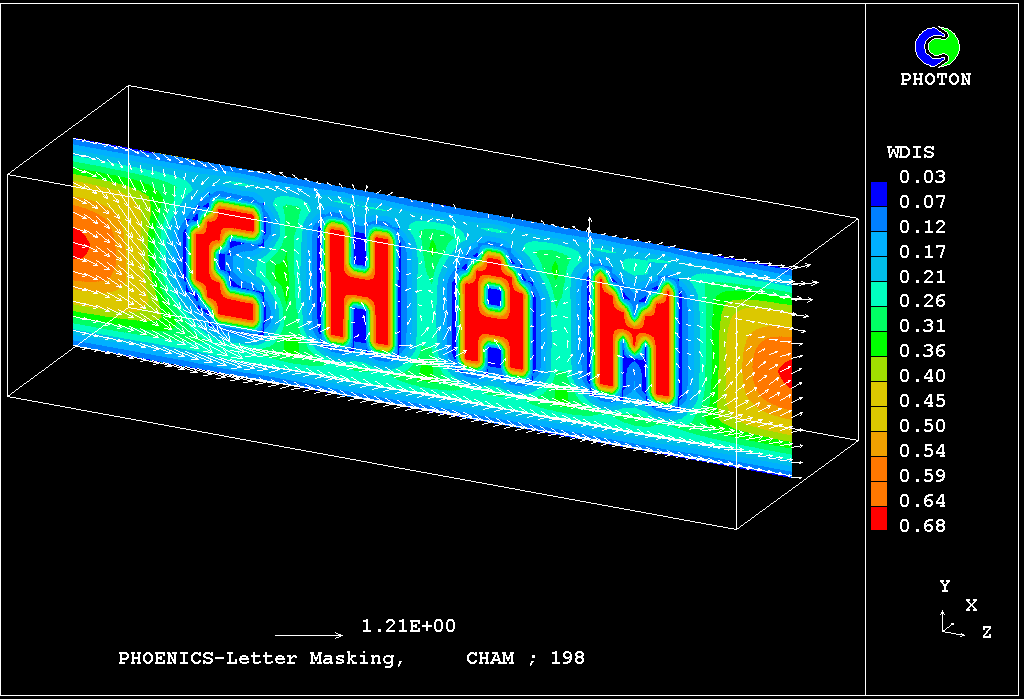 The contours appearing within the letters are WDIS, the distance from solid surfaces.