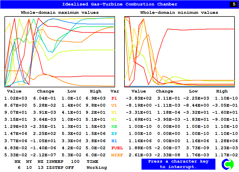 Insertion of #MAXMIN (or #maxmin) in a Q1 file has the effect of ensuring that the whole-domain maximum values of each solved-for variable are plotted on the left-hand side of EARTH's graphical-monitor output, while their minimum values are plotted on the right-hand side.