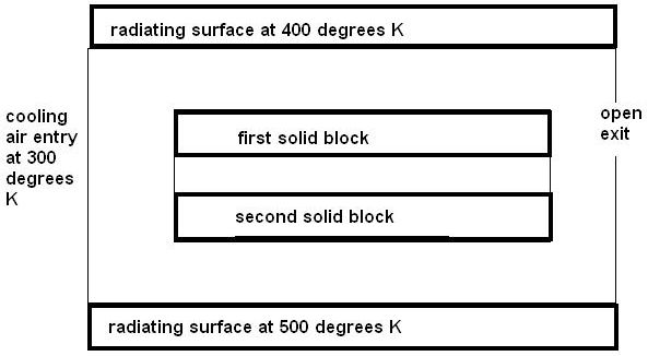 where the resistances RA-S, Rc,S-B and Rr,S-B were defined by equations 15(c), 15(e) and 15(g) earlier. Inspection of the Rr,S-B term in equation 15(g) shows that (xB-xS)/λ3,B is the conventional resistance and that (1-εS)/(εS4σT33) is the extra resistance caused by the non-unity emissivity.