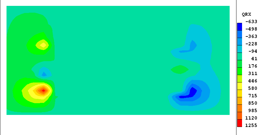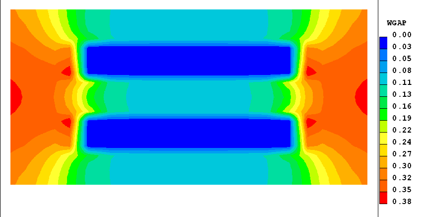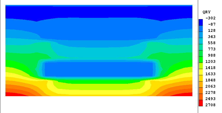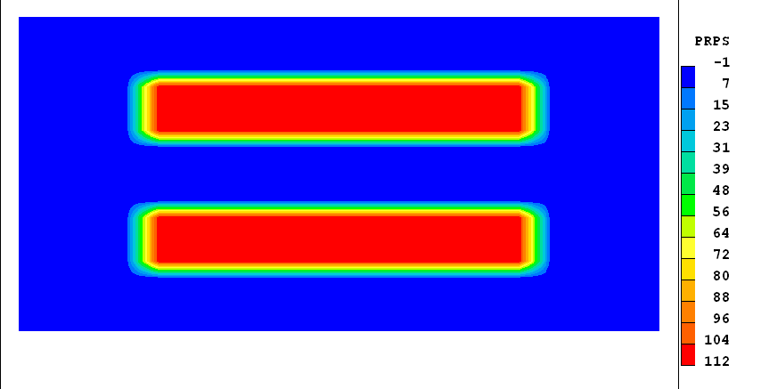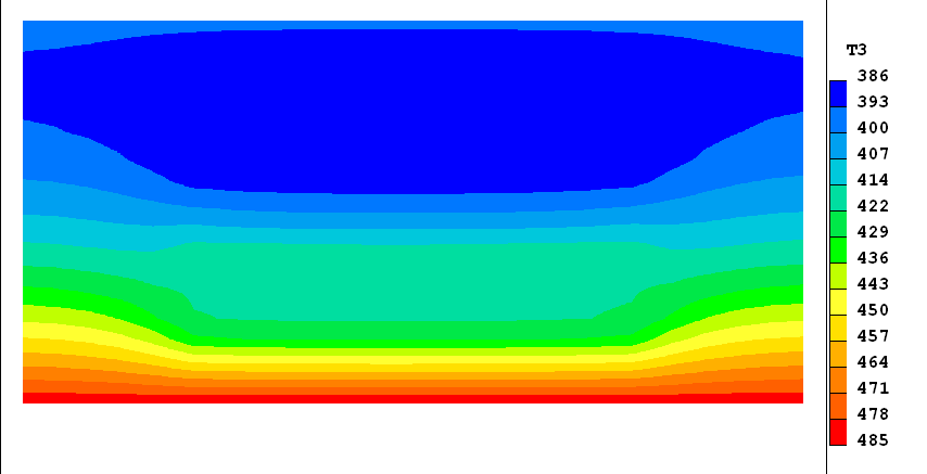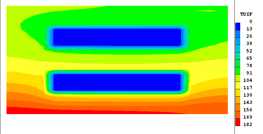 Since it is not easily seen from the above contour plot that TEM1 and T3 are very close within the solid, the following plot is provided of the difference between them. This is easily calculated by placing the following In-Form line in the Q1 file.