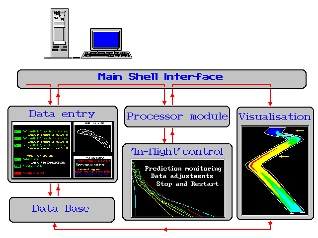 To meet these needs the integrated model system is designed. ROSA ( River Oil Spill Analyser) has been developed by CHAM-MEI as a PHOENICS add-on for computing the spread of oil on river surfaces after a spill. It is comprised of a series of linked submodels and data bases. It has the following modules which are connected through the menu system: