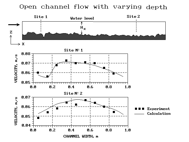 This section begins with a number of comparisons with reliable laboratory and field measurements of a velocity fields and free surface elevations in two- and three-dimensional sections of open channels and river courses.