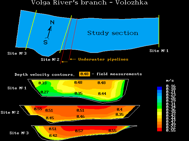 The scaled model in question is again the River Amur section just presented for velocity fields.