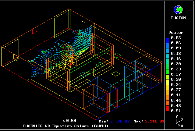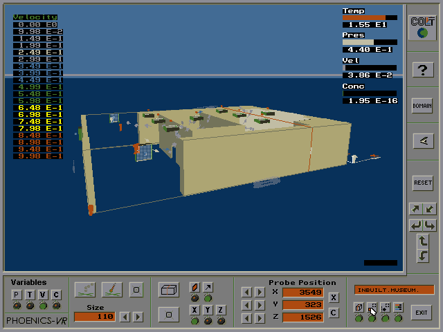 Once the PHOENICS-Earth program has performed the computations and dumped the results into a file, the contents of this file are processed by a PHOENICS-to-VR converter.