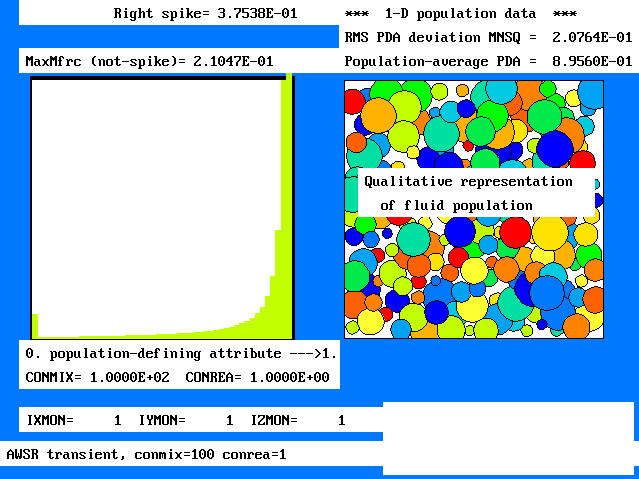 Finally, mention of the influence of the arbitrarily-selected fluid number (viz 100 in the above-discussed results) werves as a reminder that such 'population-grid-refinement' studies ought always to be conducted before quantitative reliance is placed on computed results. However, for the present expository purpose, 100 is certainly sufficient.
