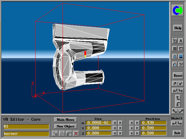 Users of PHOENICS VR frequently bring new objects into their working domain and then change their position, size and orientation by way of the controls which are provided.