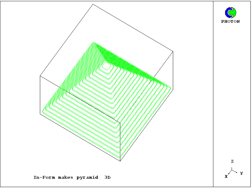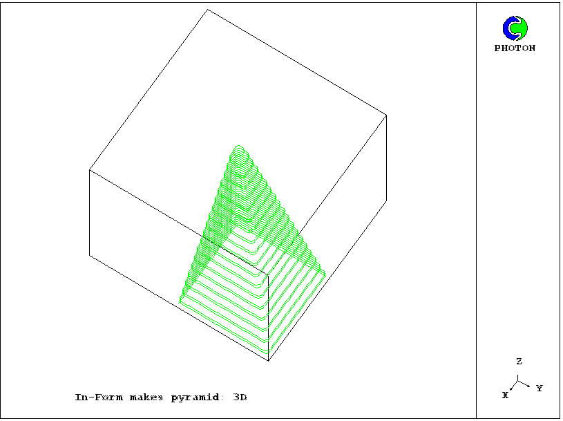 Inspection of the q1 file shows that each part of the pyramid is made by a different Infob statement, each of which however refers to the same PATCH1 and the same INFOB_1. The differences reside in their zangle arguments.