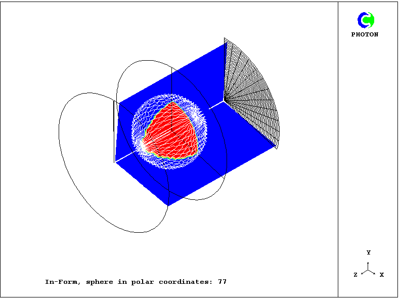 When the calculation is being carried out with a polar-coordinate grid, the cartesian coordinate system of the sphere has its origin at the bottom left-hand corner of a square which circumscribes a circle of radius RINNER+YVLAST.
